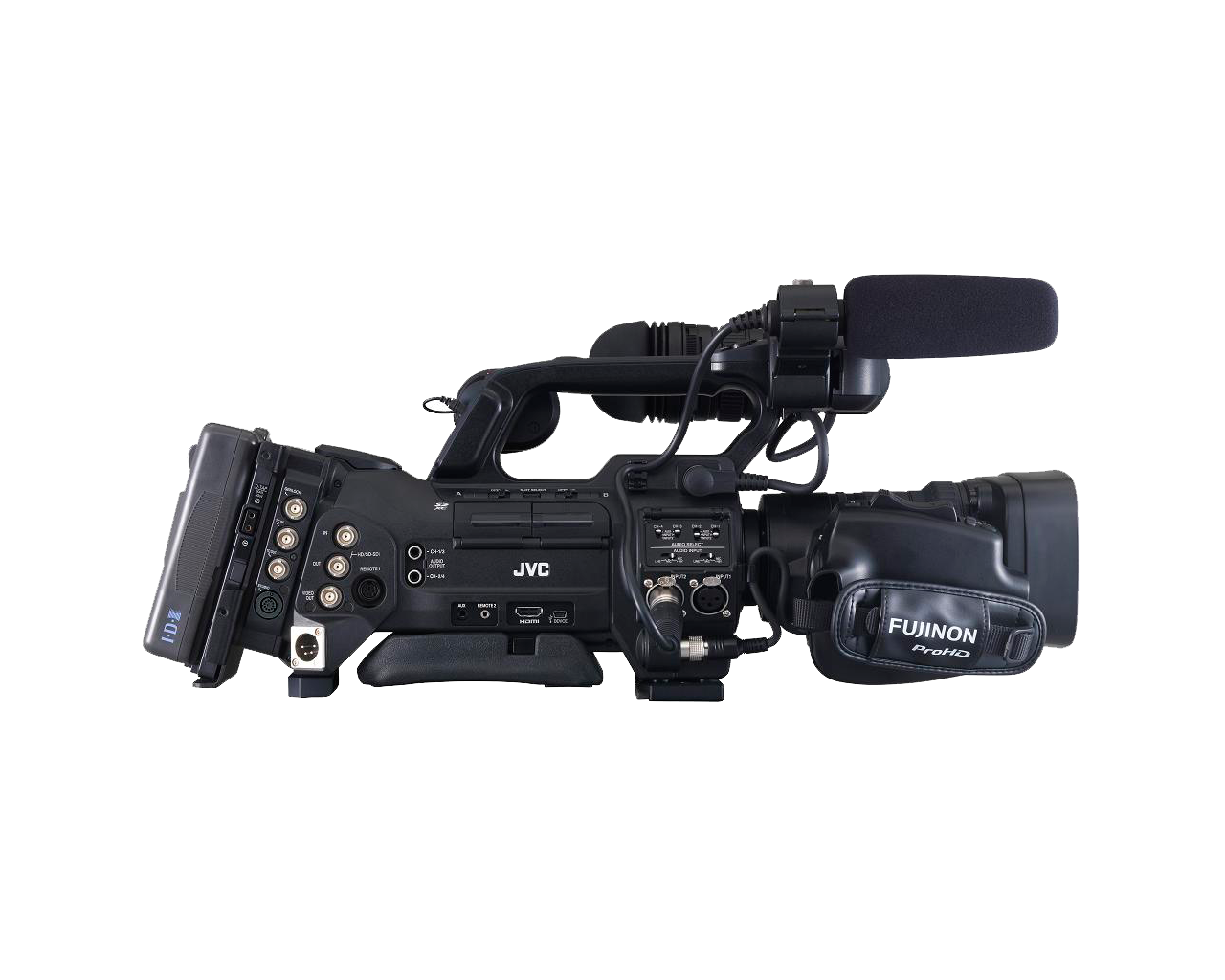 The flexible GY-HM890E three-CMOS HD camera can be used in both ENG mode or in Studio mode, delivering pristine HD images to solid state memory while streaming via optional Wi-Fi or a plugin adapter. It features a removable 20x Fujinon auto-focus lens, 4 channels of audio, dual memory card recording at up to 50 Mbps, an external HD-SDI pool feed input, and a full complement of fibre and multicore studio options.